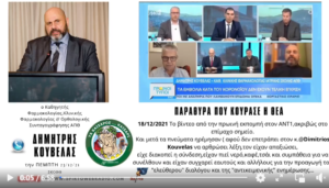 Με αφορμή την – κατ΄ολίγον – παρουσία του κ.Κούβελα στην πρωινή εκπομπή του ΑΝΤ1 “Πρωινοί Τύποι” και τα όσα απαράδεκτα διαδραματίστηκαν ,το SpIrto web Radio ,η εκπομπή “Τα Καίσαρος…Καίσαρι” και η γράφουσσα,διατηρώντας τα μικρόφωνά τους ανοιχτά σε κάθε άποψη συνοδή ή αντίθετη που εκφέρεται τεκμηριωμένα,φιλοξενούν σήμερα τον ιατρό και καθηγητή Φαρμακολογίας κ. Dimitrios Kouvelas και βρίσκονται στην απόλυτη διάθεση όσων θελήσουν να υποβάλλουν ερωτήματα, τα οποία θα μεταφερθούν στον αέρα…
