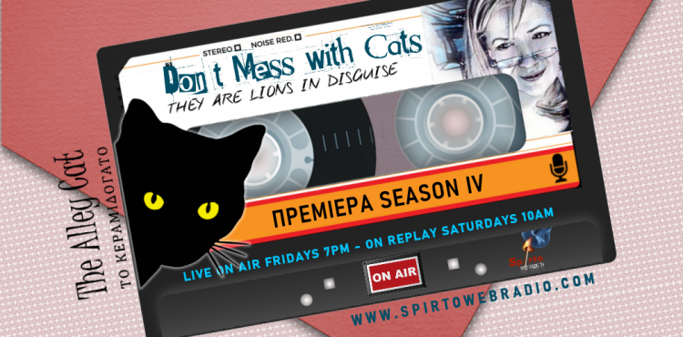 Από αυτή την Παρασκευή, 18.10.2019 και κάθε Παρασκευή, στις 7 το βράδυ… νιαουρίζουμε! Πρεμιέρα με το Κεραμιδόγατο – The Alley Cat σε ολοκαίνουργια … επεισόδια της σειράς εκπομπών Don’t Mess with Cats! They are lions in disguise, στο SpIrto web Radio της καρδιάς μας, όπου στην περίπτωση μας εδώ – μη μπερδευόμαστε – επεισόδιο σημαίνει … επεισόδιο.